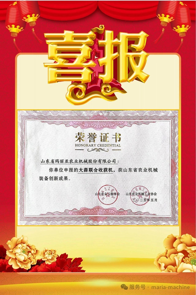 喜报丨羞羞答答网址在线观看羞羞答答网站联合收获机荣获“山东省农业机械装备创新成果”